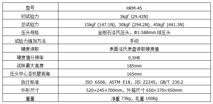 HRM-45表面洛氏硬度計(jì)是一種普及型的表面洛氏硬度測試儀器。適用于材料的表面洛氏硬度試驗(yàn),無需電源,其施加試驗(yàn)力的速度由液壓緩沖器來調(diào)節(jié),試驗(yàn)力變換通過變荷手輪的旋轉(zhuǎn)獲得。本儀器操作簡便,性能穩(wěn)定,使用廣泛。