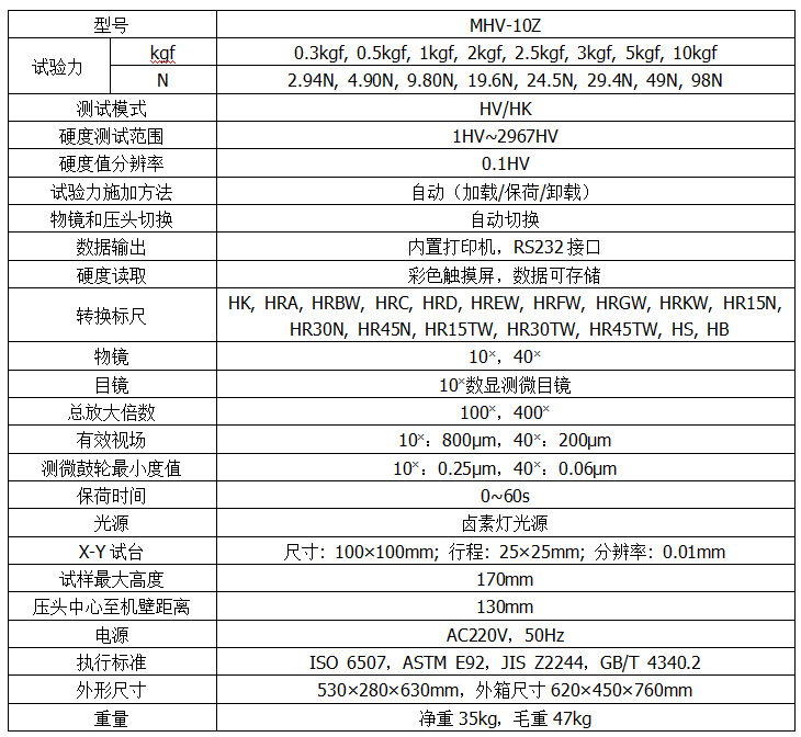 MHV-10Z數(shù)顯維氏硬度計是光、機、電一體化的高新技術產(chǎn)品,采用閉環(huán)式加載控制系統(tǒng),試驗力精度高,示值的重復性及穩(wěn)定性佳。該儀器采用全新的高分辨率彩色觸摸屏,顯示直觀清晰,操作方便,顯示屏背光可調(diào)、具備節(jié)能模式。配備數(shù)顯測微目鏡,不用查表,也不用輸入壓痕對角線,在觸摸屏上直觀地顯示試驗力、壓痕長度、保荷時間、測量次數(shù)、轉(zhuǎn)換標尺、日期時間,操作時只要測量壓痕按目鏡按鈕,即可自動計算出硬度值并顯示在屏幕上。硬度測試結果實時保存,任意數(shù)據(jù)可選刪除及打印輸出,自動計算最大、最小、平均值;并配有RS232接口供用戶連接電腦輸出?蛇x配LCD視屏測量裝置和CCD圖像自動測量系統(tǒng)。