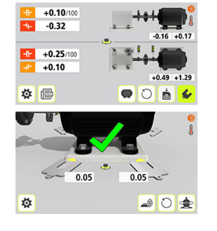 垂直運(yùn)動(dòng)™ 該功能通過在機(jī)器底座上添加或移除墊片,精確顯示需要調(diào)整的機(jī)器錯(cuò)位程度以及調(diào)整方向。不再需要在垂直和水平相位之間重新測量,以糾正水平偏差。