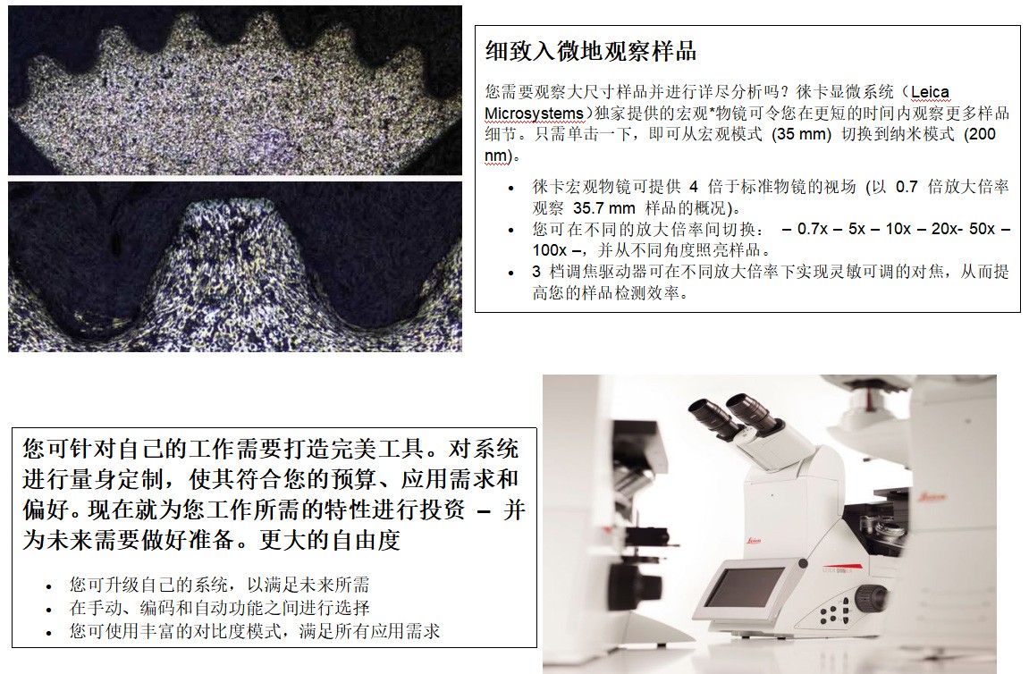 在競爭中保持領先是您事業(yè)前進的動力。無論您從事金相學、醫(yī)療設備制造還是微電子領域,速度都顯得至關重要。您可根據自身需求定制徠卡這款高度模塊化的倒置式顯微鏡。它將徠卡優(yōu)異的光學品質、豐富的對比度模式以及直觀易用的軟件集于一身,有助于加速您的工作流程。